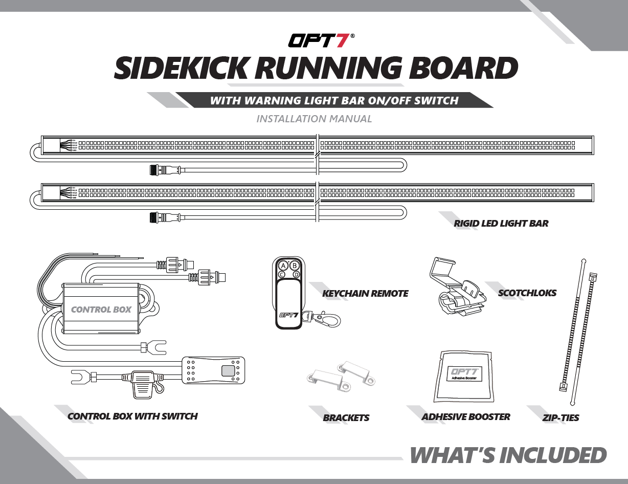Find the OPT7 Sidekick Running Board w/ Warning Light On/Off Switch Installation Guide (Bars) manual download link below!